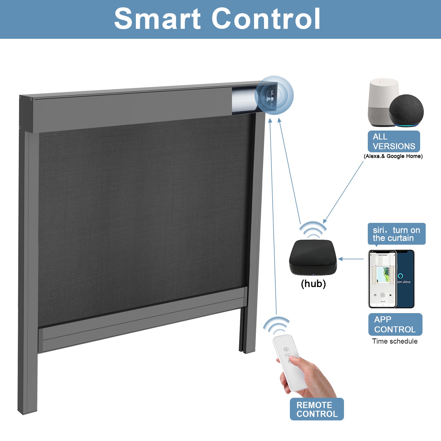 We offer 1-channel remote controller, it can control 1 shade independently or control 999 blinds/shades together. If you have Broadlink RM Pro+ at home, you can control our shades and set timer through all models of Alexa and Google Home.
