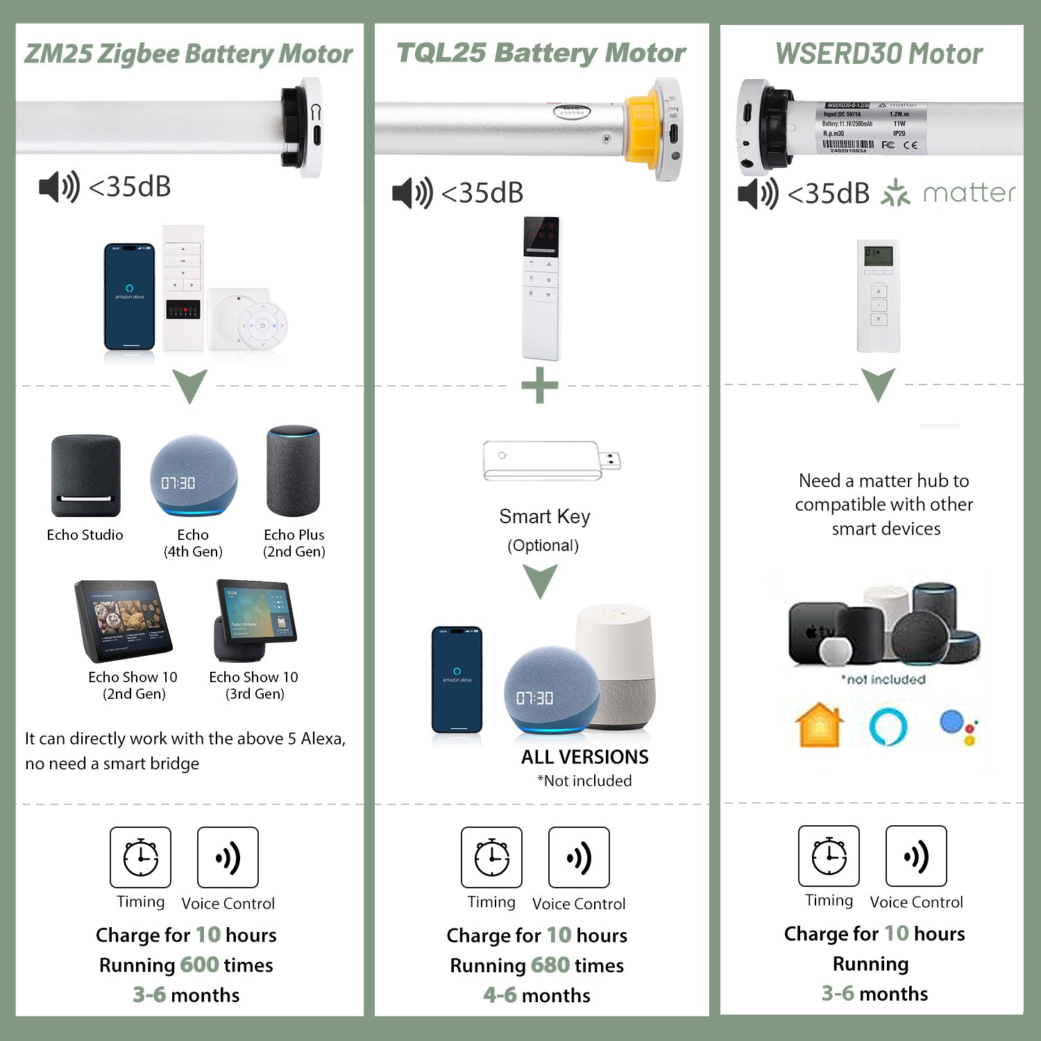 Device compatibility, we offer three different motors, different motors compatible with different equipment, please read our product details description, choose the motor you need. Different motors adapt to different remote controls are not compatible with each other temporarily.