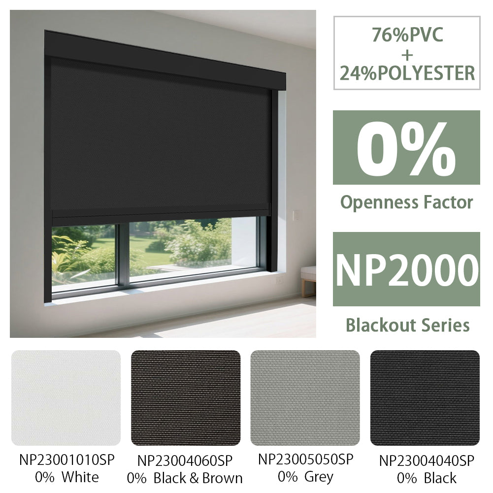 Polyester and 70% PVC. Light filtering sunshine fabric and 10% openness. Water-proof and fireproof fabric. Suitable for outdoor balcony patio porch and so on.