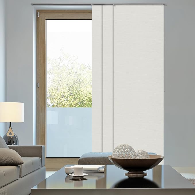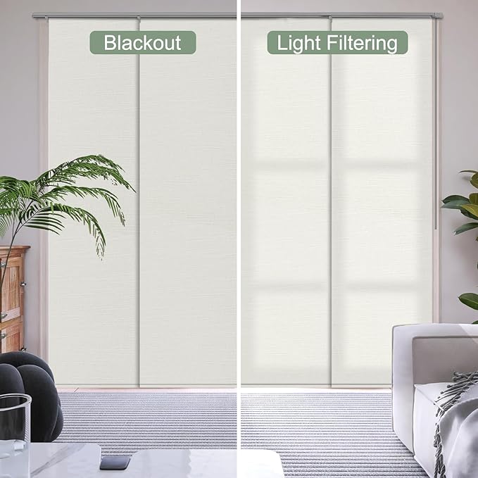 Full blackout polyester fabric.Reduce light and increase privacy at your convenience with our panel track blinds.